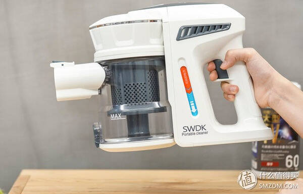 主体的顶部印着品牌的英文缩写SWDK,前端的尘杯顶部与戴森有几分相似。