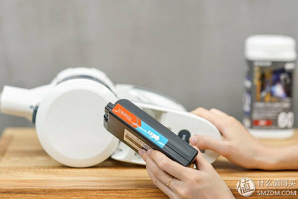 右侧面标识了电池是可以拆卸替换的,这个与戴森的内置电池设计有所不同,更方便以后电池出现问题时可以自行简单替换。