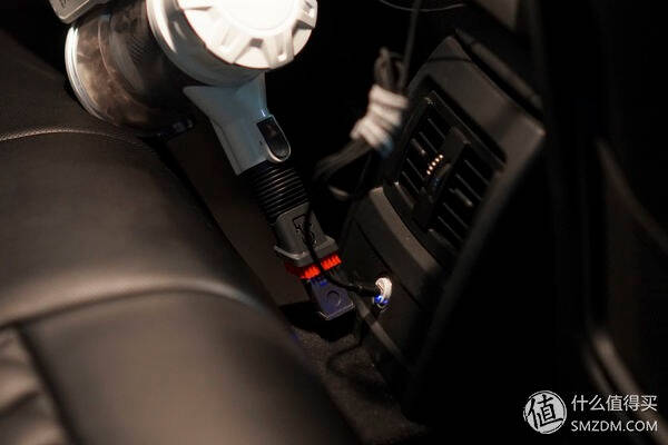 将二合一吸尘毛刷的头切换回窄边的吸尘口,并转换到加强模式可以更有效的清理车上座椅、脚垫深处的灰尘。